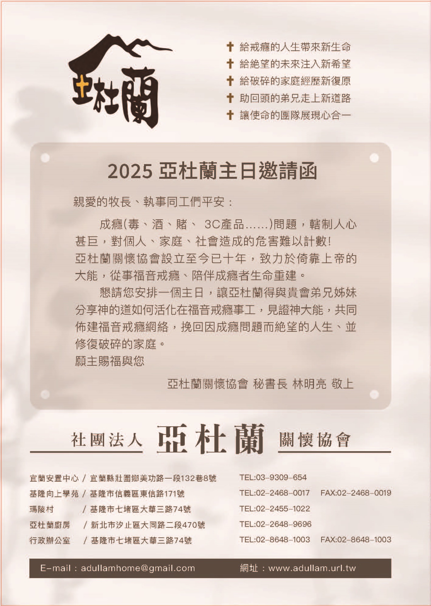 https://www.adullam.url.tw/ 社團法人中華民國亞杜蘭關懷協會